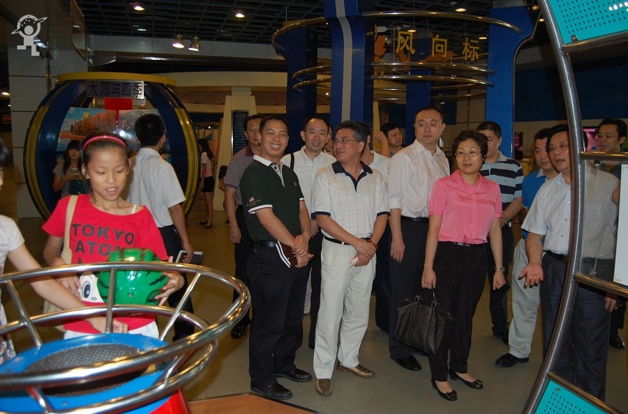 2012年8月7日下午,宝安区副区委书记梁敏华、张勇同志率区文体旅游局、团区委、中心区规划办、工务局等单位同志一行前来少年宫参观考察。少年宫主任单协和、副主任王斌及督导主任徐士斌等陪同参观了少年宫美术基地、球幕影院、美术基地、地下展馆等处并进行了愉快的座谈交流。
