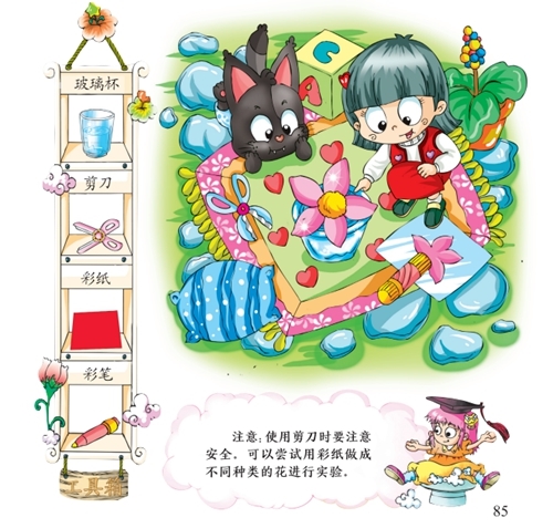 原理:纸花瓣会展开,这是水的毛细现象的表现,当纸吸收的水达到折痕处的时候,水使纸的纤维膨胀,纸花瓣就自动展开了。
